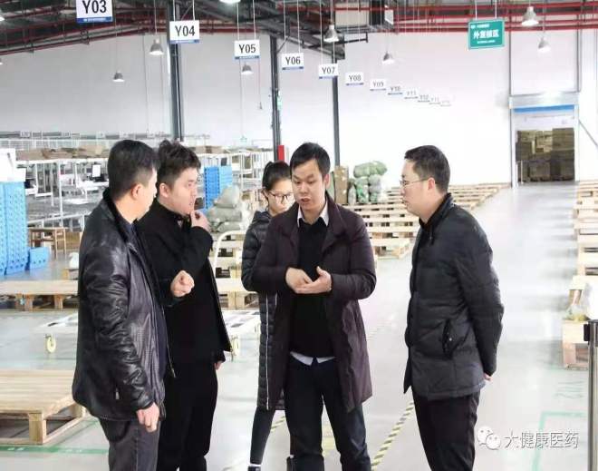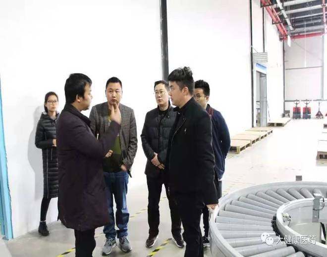 2017年3月1日下午,贵州省黔南药业有限公司董事长赵洋,总经理王磊,副总经理陈亿到安顺市大健康医药销售有限公司进行参观,在参观公司仓储物流中心的过程中,安顺市大健康医药销售有限公司董事长、总经理刘诗勇,副总经理杨旭东向黔南药业各位领导详细介绍了我公司的先进企业管理系统(ERP系统)和专业物流管理系统(LMIS系统)。物流中心整体采用中央空调恒温控系统、全程无缝冷链作业系统、全仓温湿度实时监控系统、全仓视频实时监控系统等符合GSP要求的库房控制系统,同时实现全仓WIFI信号覆盖;物流技术方面,物流中心采用先进的自动化箱式输送分拣系统、复核高速分拣系统、条码复核系统、自动升降装卸平台、无线智能拣选系统、无线移动收货系统、工业服务器、RF手持终端等行业先进物流作业设备。